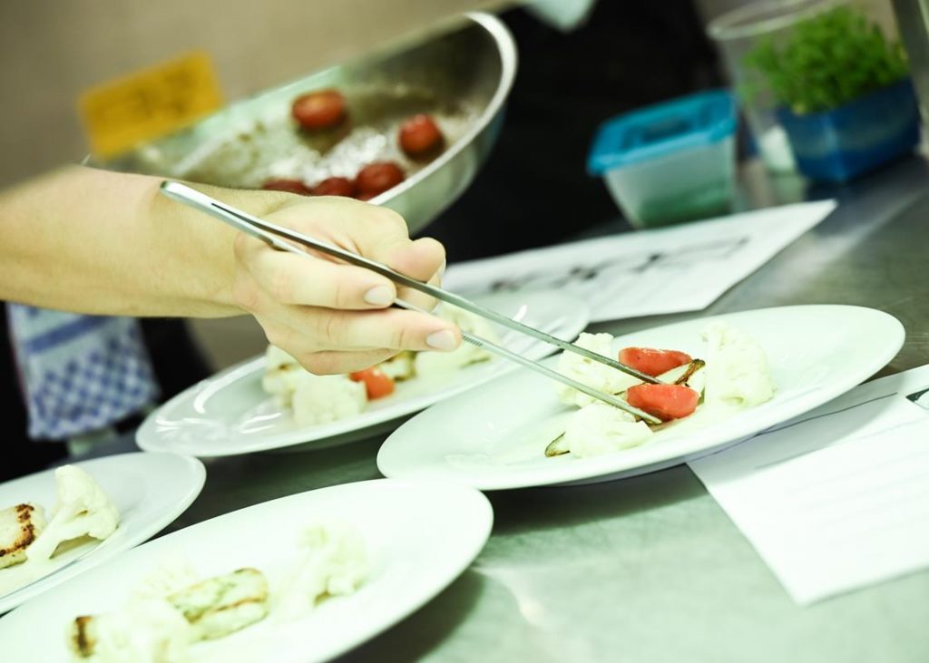 Eine Jury beurteilt das aus einem bereitgestellten Warenkorb kreierte 3-Gang-